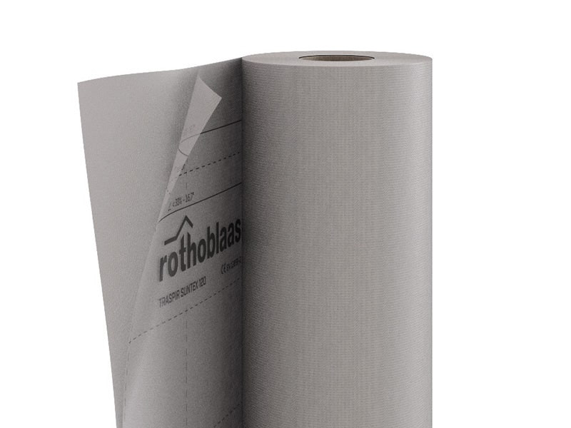 The TRASPIR ALU 120 highly breathable membrane consists of two layers: the upper one in aluminium, the lower one in breathable polypropylene film. It is also available in the 2,7 meter format.