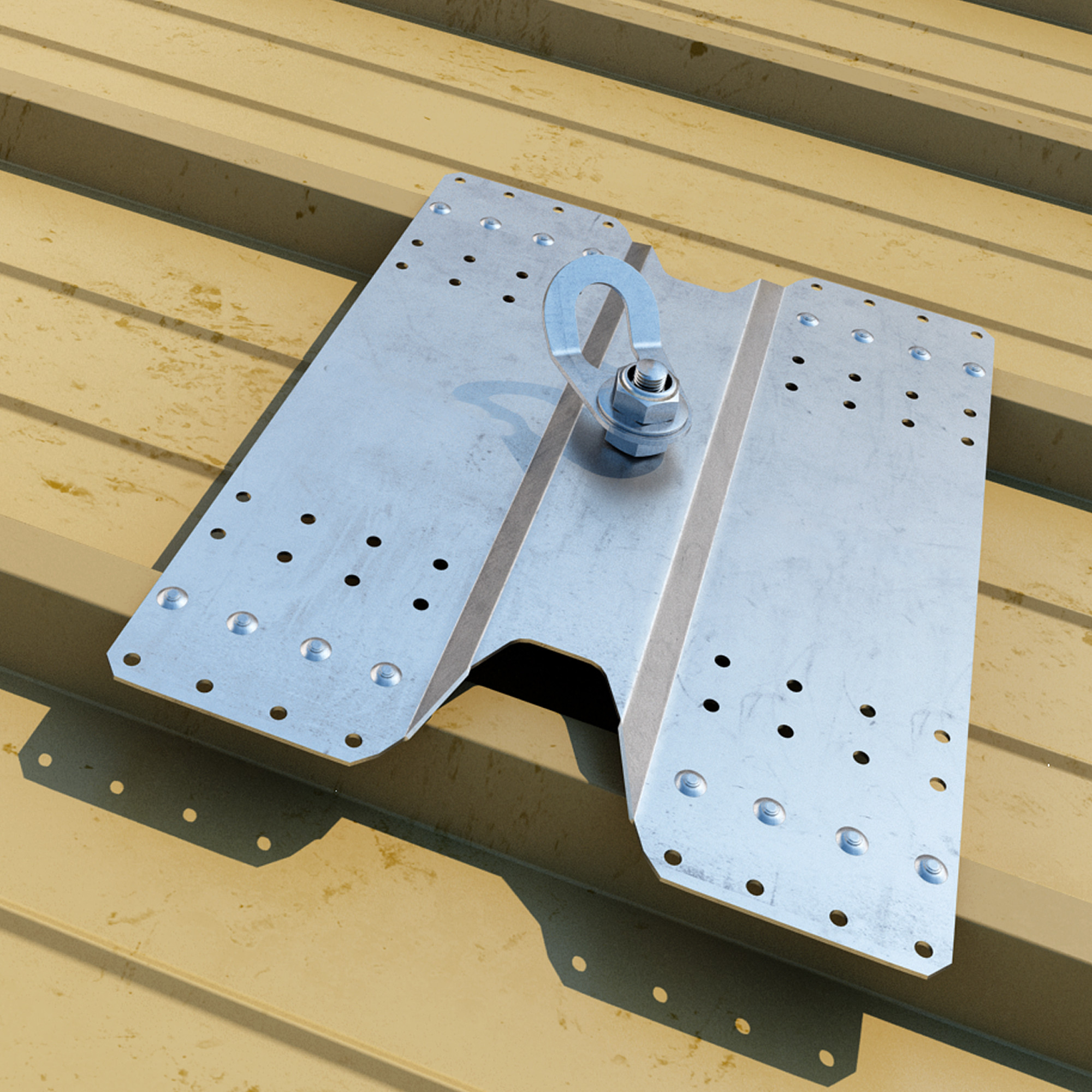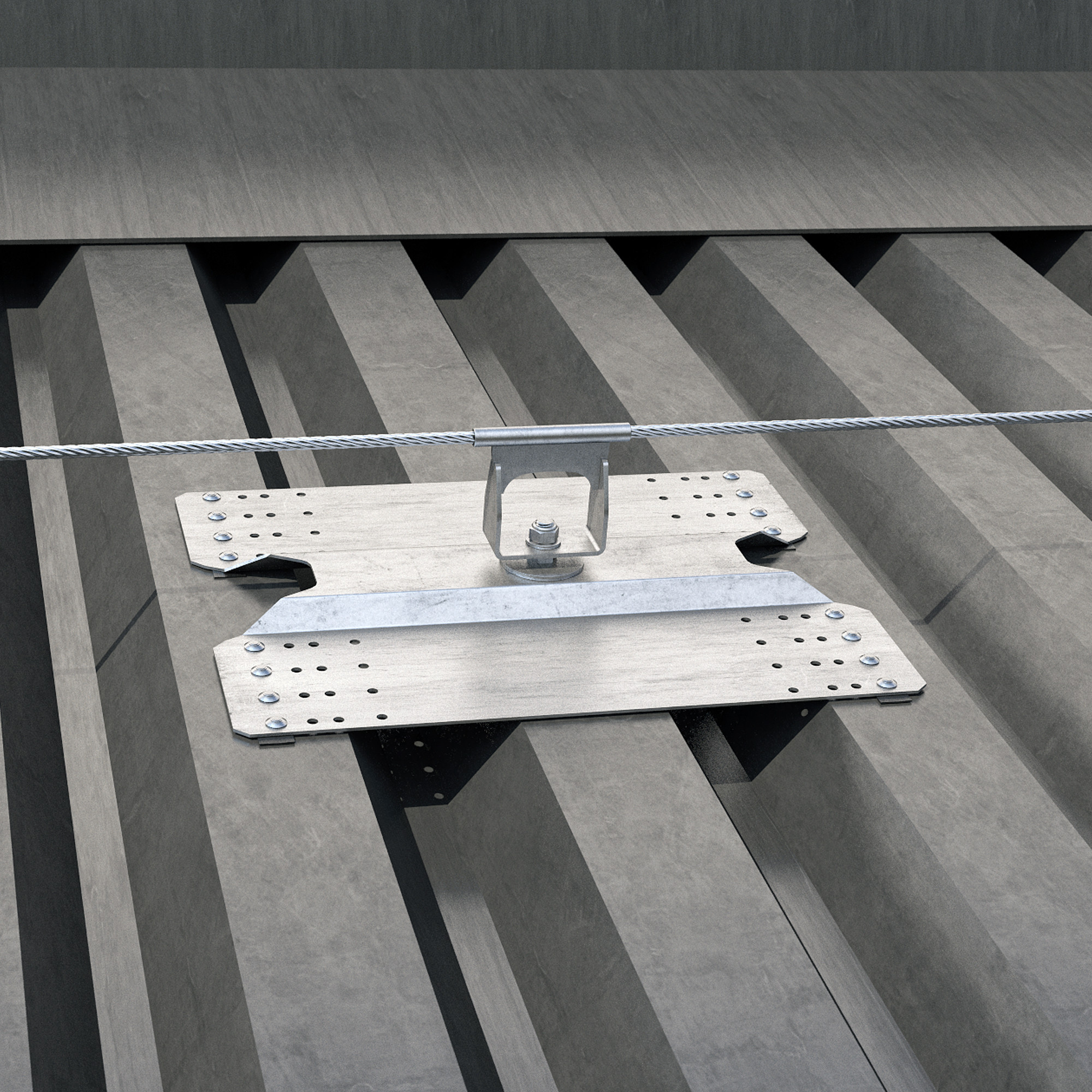 It is the intermediate support for anchor lines on corrugated sheet metal roofs. For flat or inclined roofs, choose SHIELD 2.0.