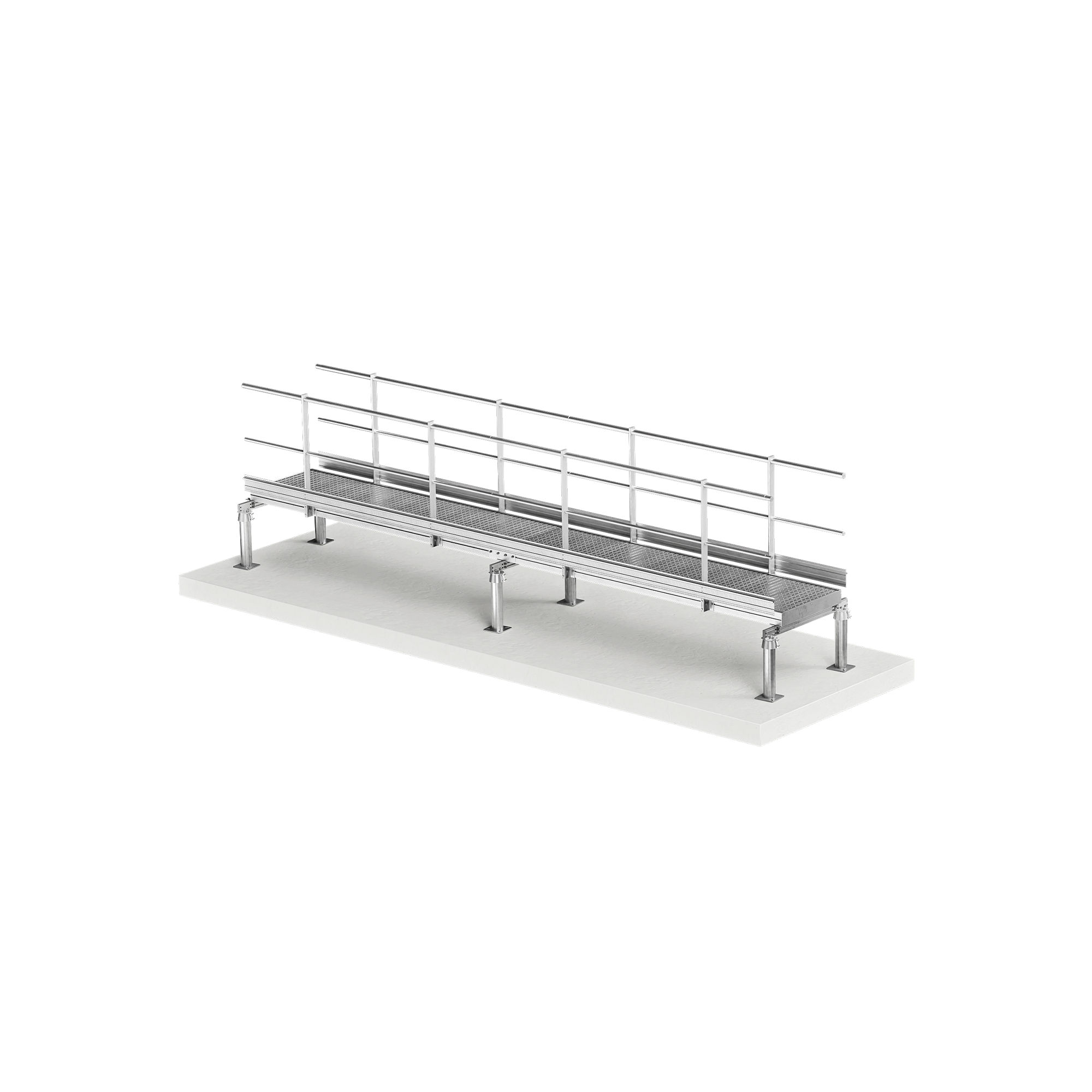 Standard modules to create safe and effective walkways and overpass systems, with or without railings.