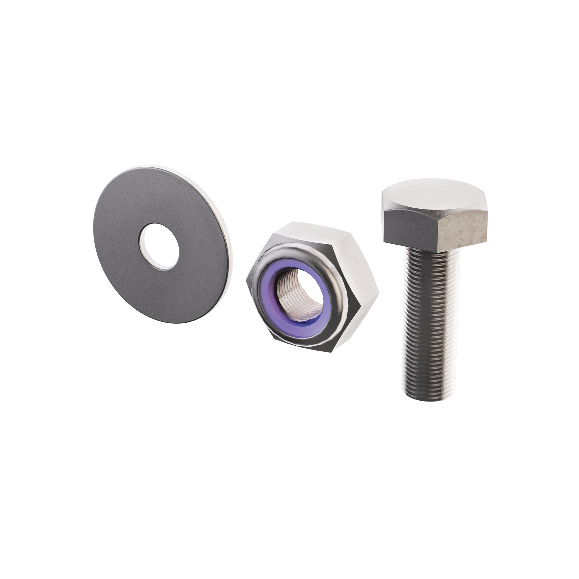 Connection set between different TOWER supports and TOPLATE 2.0 plate. It consists of of 4 hexagonal head bolts, self-locking nuts and washers.
