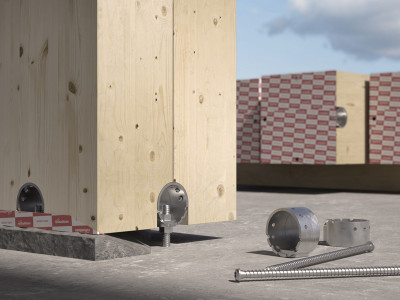 With its circular geometry and the double inclination of the screws, RING fits completely into the timber wall and is the ideal solution for prefabrication in the factory, transport and simple assembly on site.