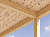 When adequately protected by timber, it is suitable for outdoor use. ALUMINI brackets for glulam or solid timber can be used for timber-to-timber and timber-to-concrete joints, both perpendicular and inclined.