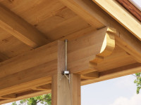 It is a “multipurpose” connector, to be fixed with appropriate screws on any point of a timber structural element and has a threaded hole, suitable for bolts, threaded rods or threaded anchors for concrete. It makes it possible to fasten a timber structural element to any other structural element by means of a simple threaded connector.