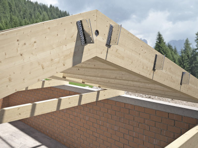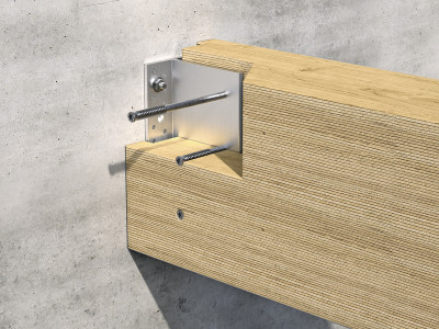 For applications on concrete or other uneven surfaces the SBD self-drilling dowels allow a greater installation tolerance when fastening the timber element. Values are certified, tested and consolidated. ALUMIDI fastening brackets can be used for timber-to-timber and timber-to-concrete shear joints both perpendicular and inclined. Ideal for application on solid timber and glulam, CLT, LVL and timber-based panels.
