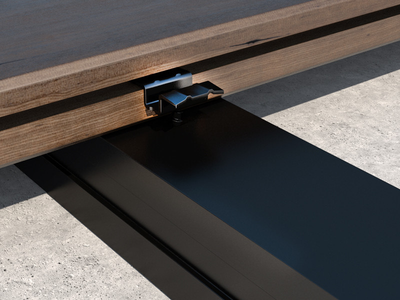 The TVM connector for decking is available in four versions, including the black version for a completely hidden effect.