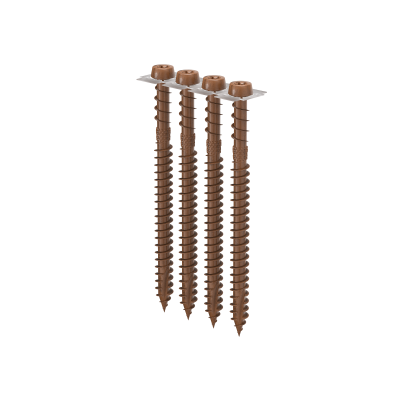 Carbon steel version with coloured, anti-rust coating (brown, grey, green, sand and black). KKT COLOR is suitable for use without pre-drilling on timber boards with a density of up to 780 kg/m3 and with pre-drilling on timber boards with a density of up to 880 kg/m3.