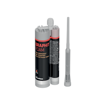 The foam is made from a two-component intumescent polyurethane polymer that can expand up to 3 to 5 times its original volume. Graphite aids
