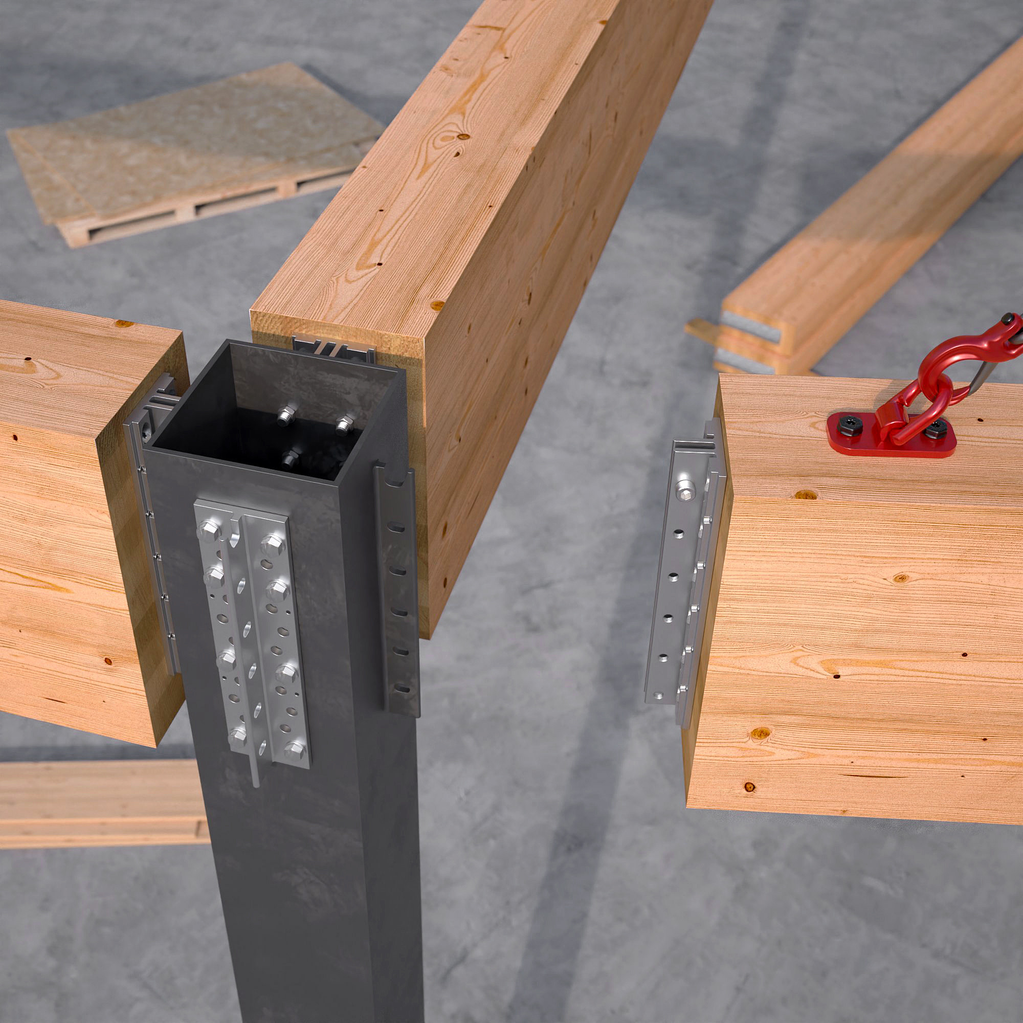 With ALUMEGA post and beam connector, the theoretical behaviour assumed in the design of timber-to-timber connections is enabled: