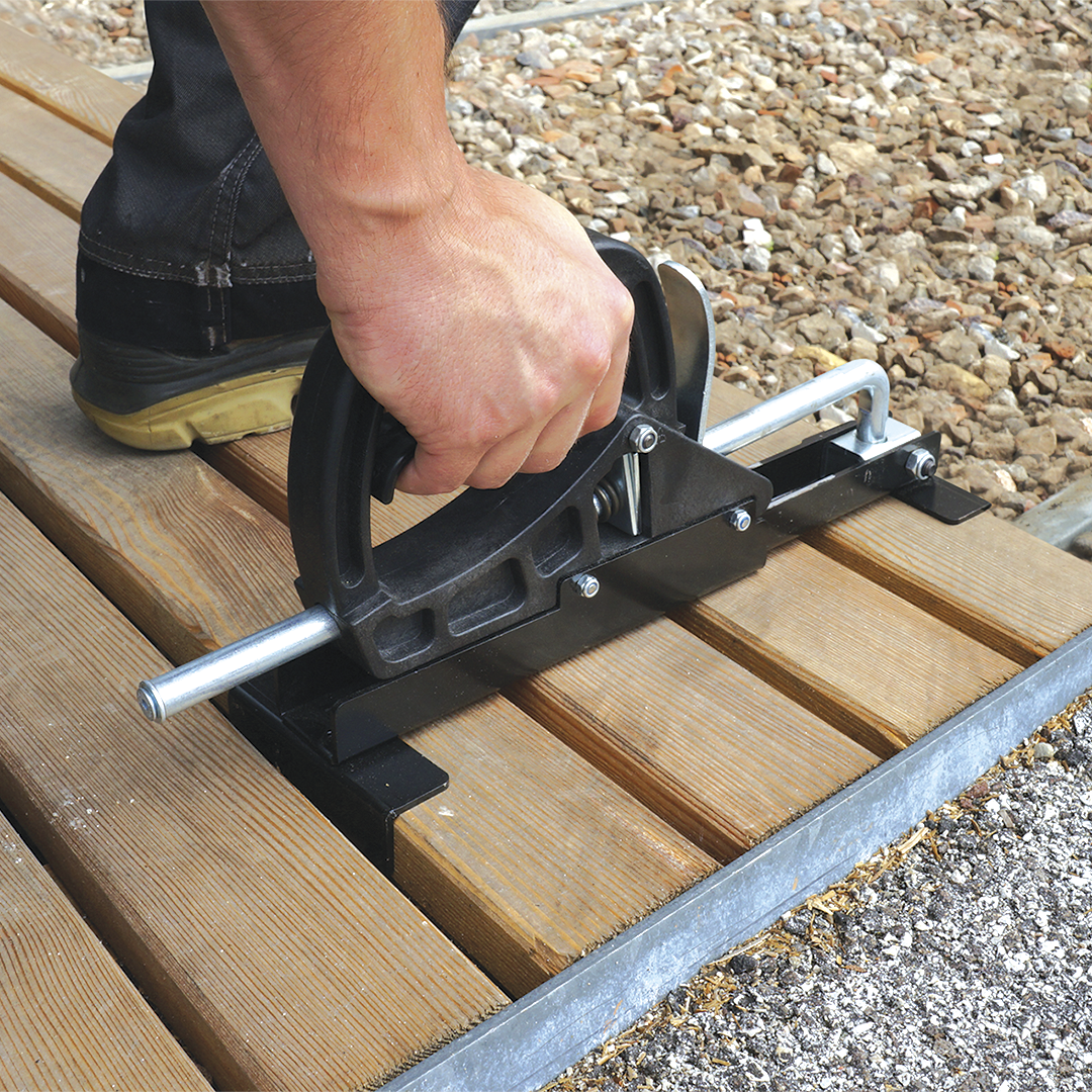 The CRAB MINI terrace clamp is the ideal tool for clamping boards in the construction of timber terraces. Suitable for all types of timber, it is equipped with rubber protective pads to prevent damage to the boards.