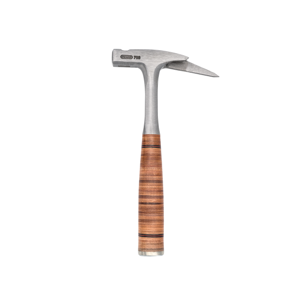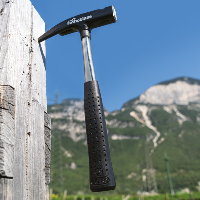 For even greater safety, the head is fastened to the handle by a tempered steel pin in place of the common elastic dowel.