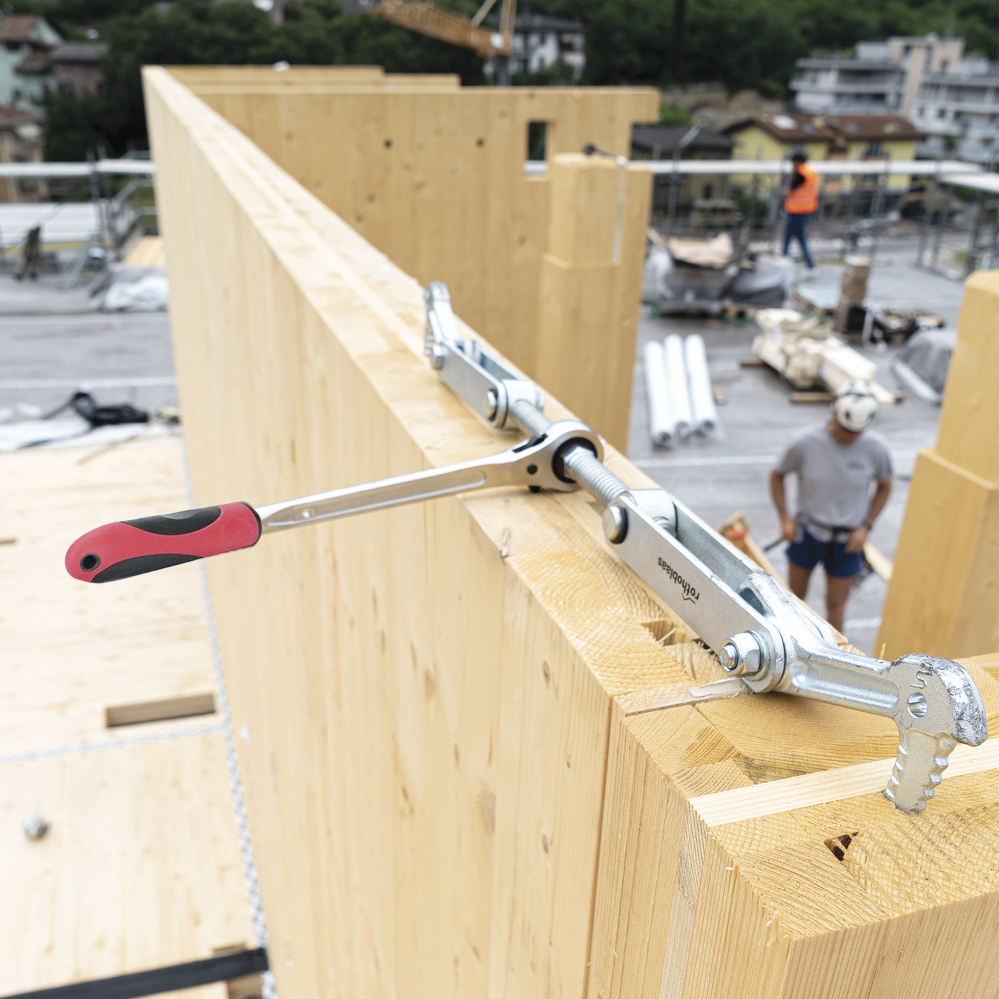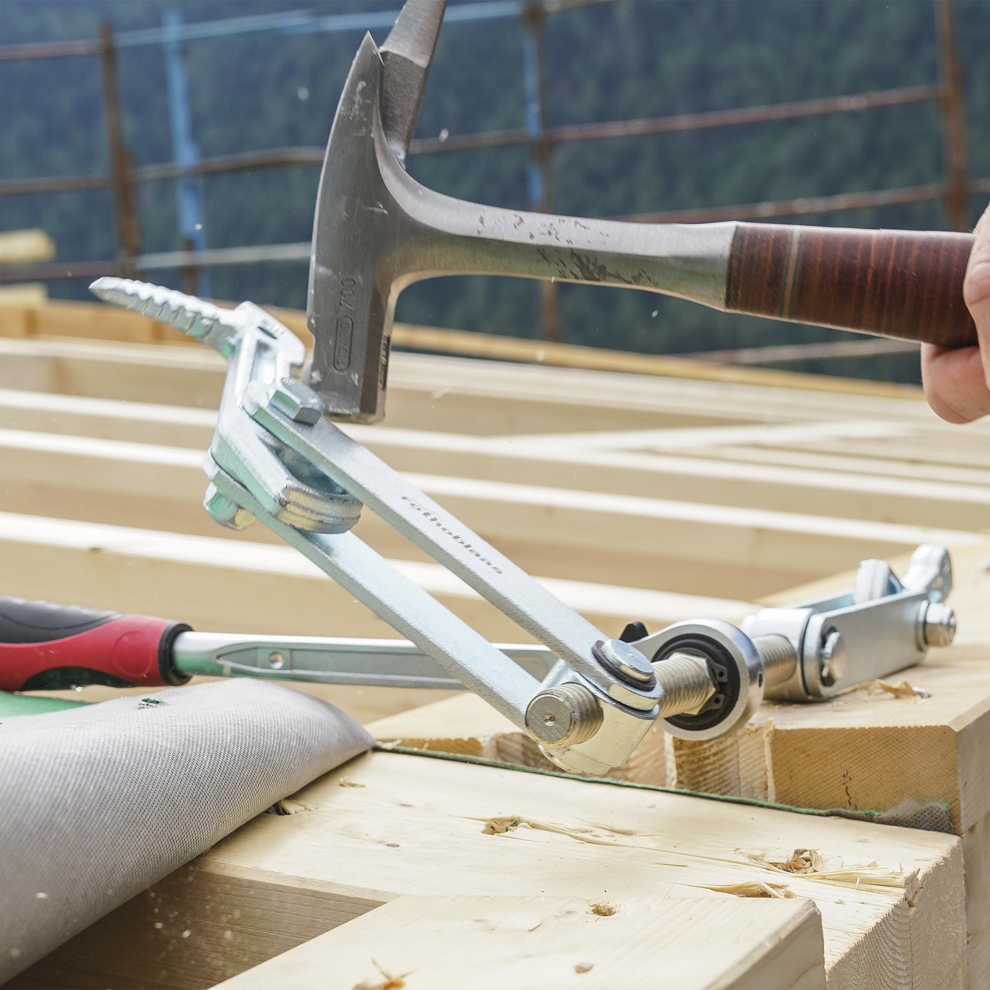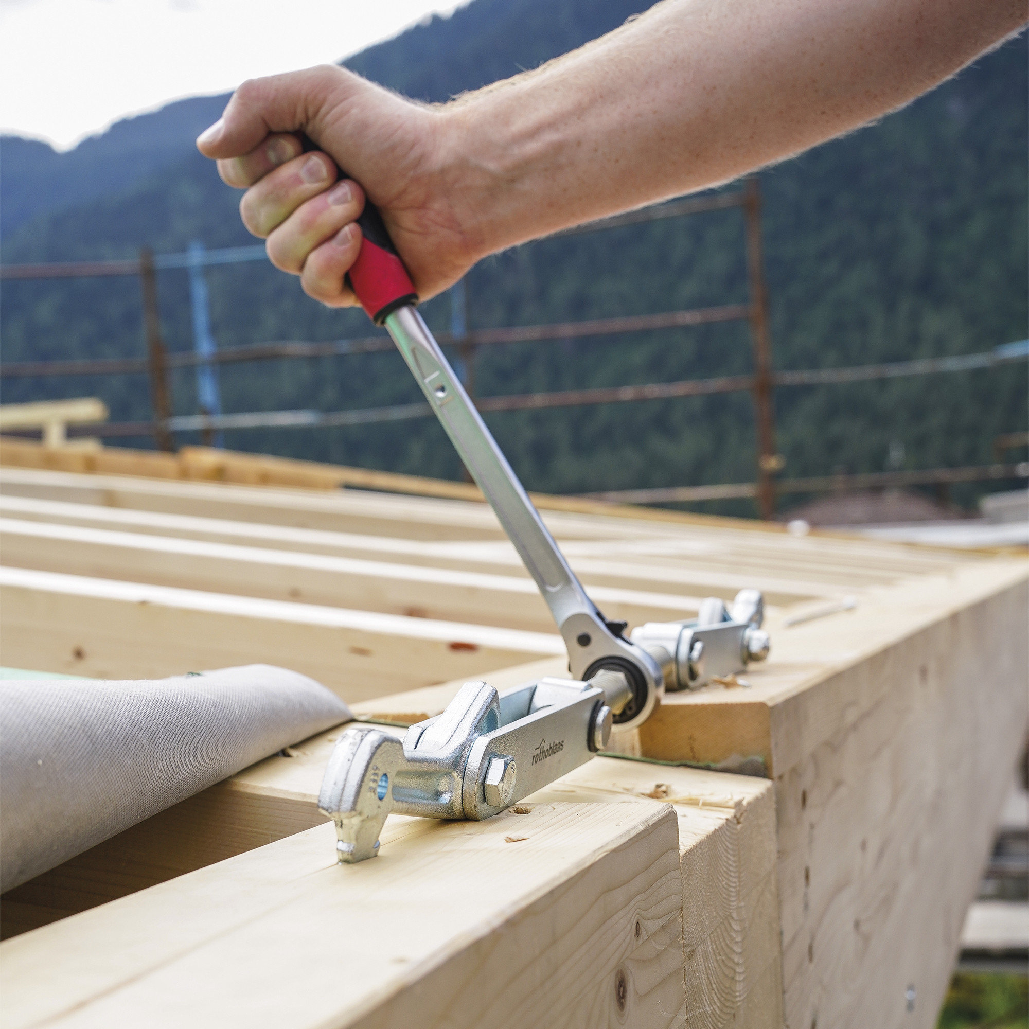 The SKORPIO beam puller is the ideal tool for the pressure connection of multiple elements made of timber or timber-like materials.