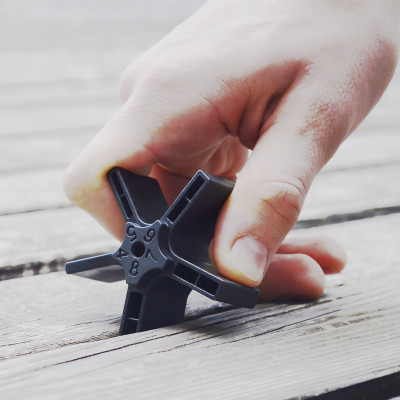 The STAR spacer star is the simple and practical tool for creating uniform gaps when building wooden terraces.