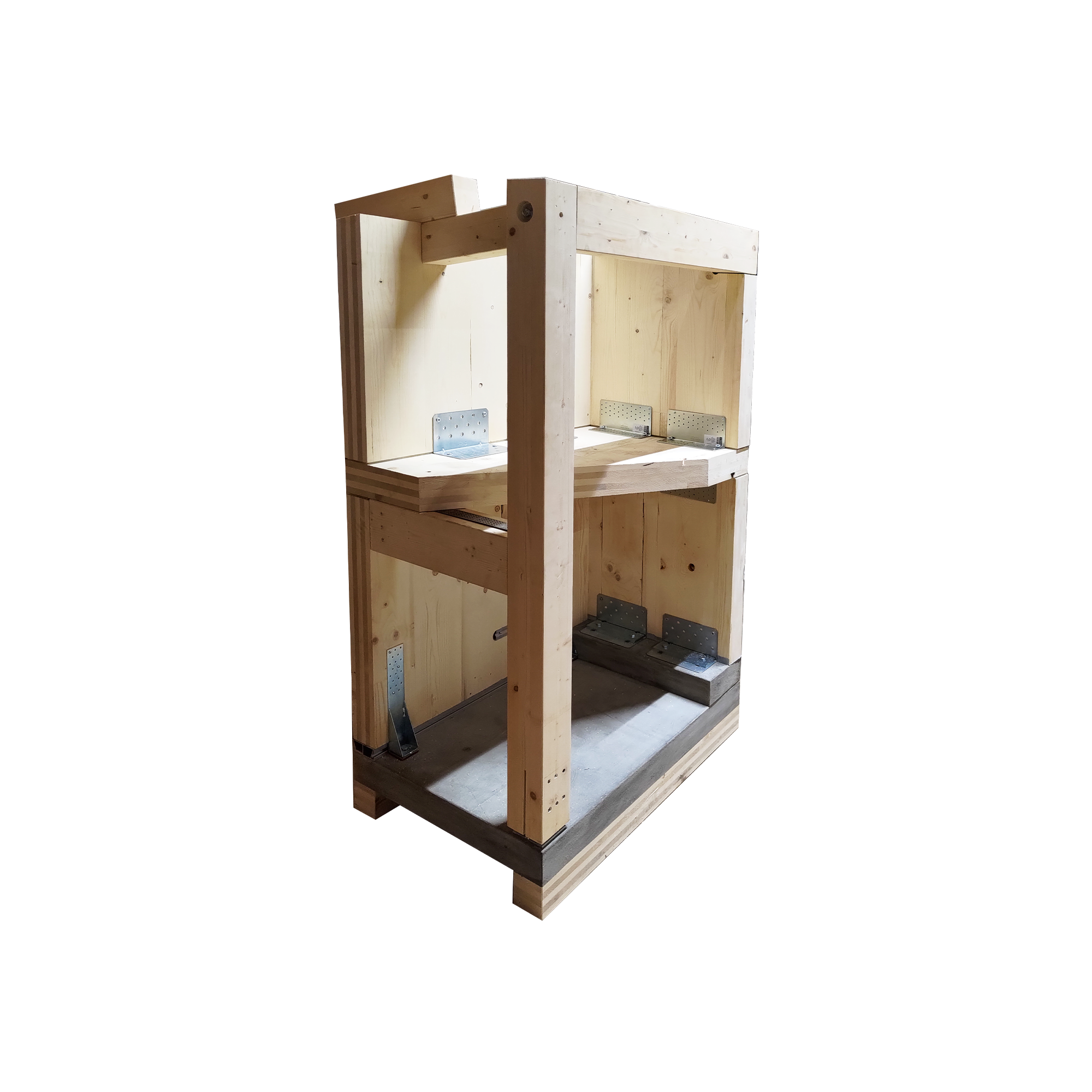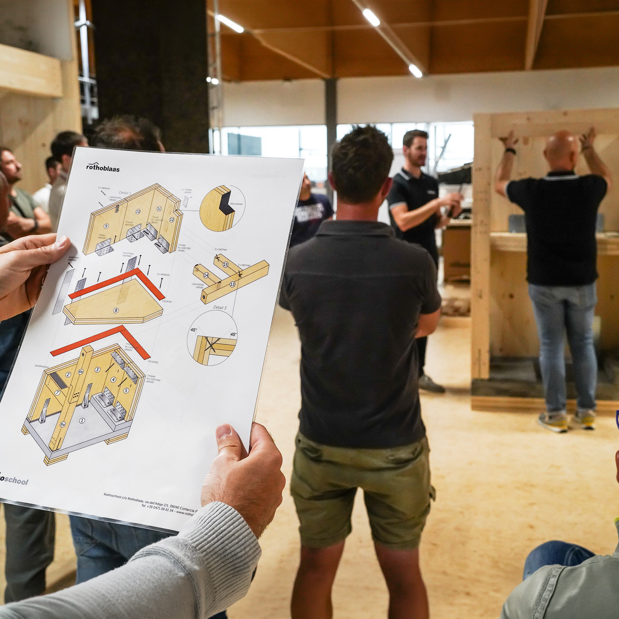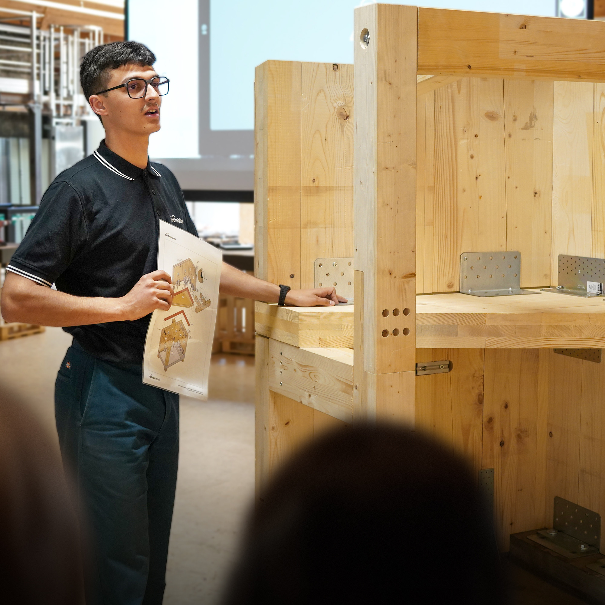 The display allows participants to understand how connections work, showing how structural screws, plates and connectors work together to transfer loads between panels and beams.