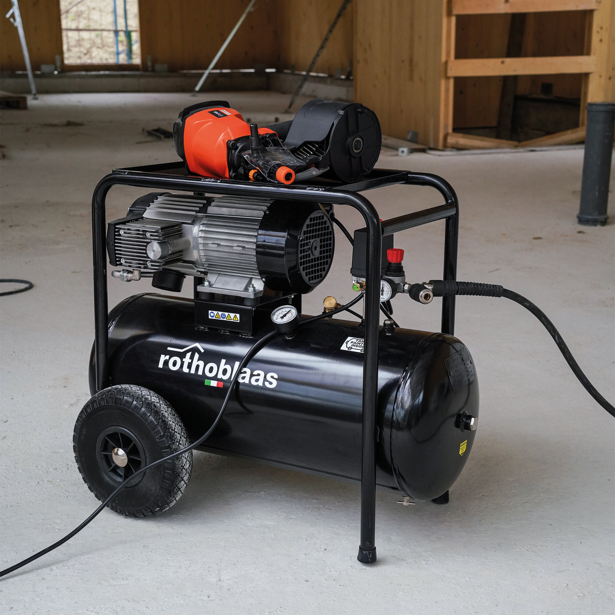 Thanks to the lower centre of gravity, the horizontal compressor is more stable and less prone to tipping, making it particularly suitable for construction sites with uneven terrain.