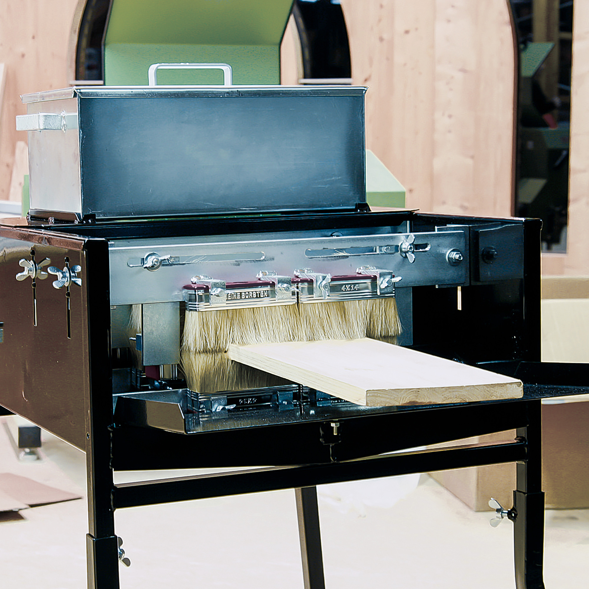 JELLY is the worksite painting machine for boards and wooden elements that will reduce application time and guarantee uniform and impeccable application.