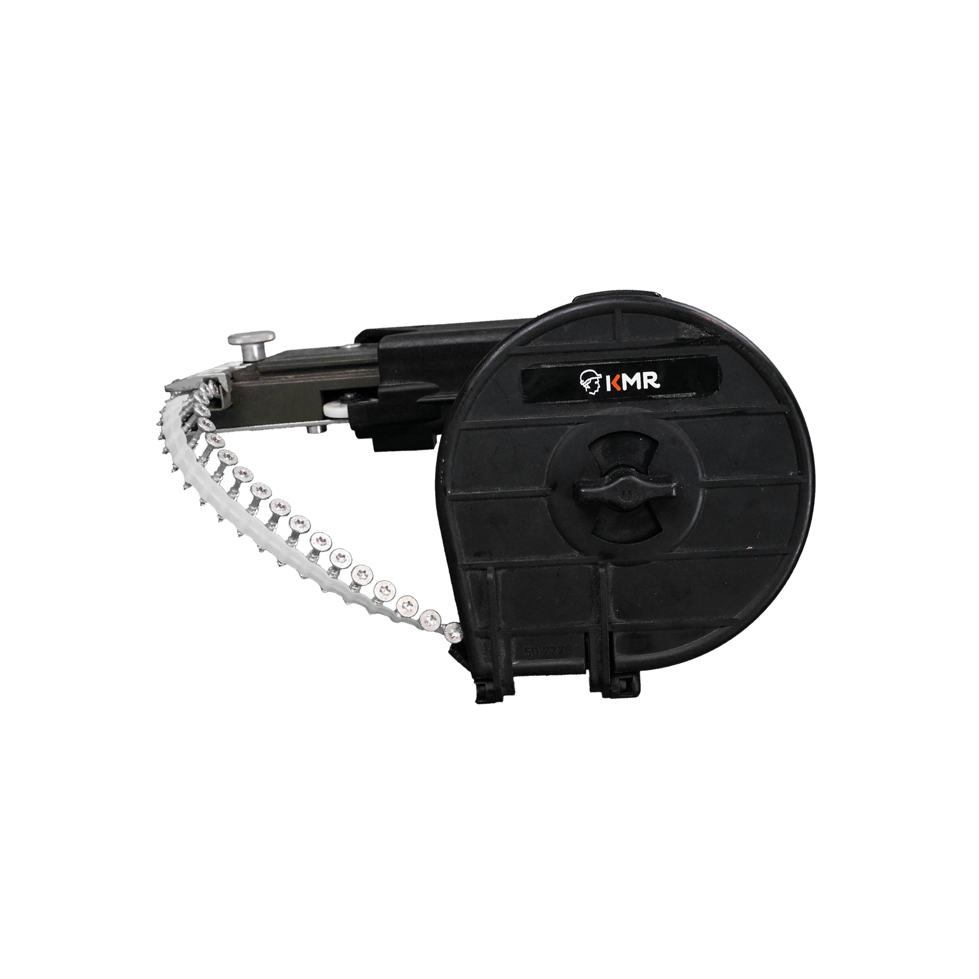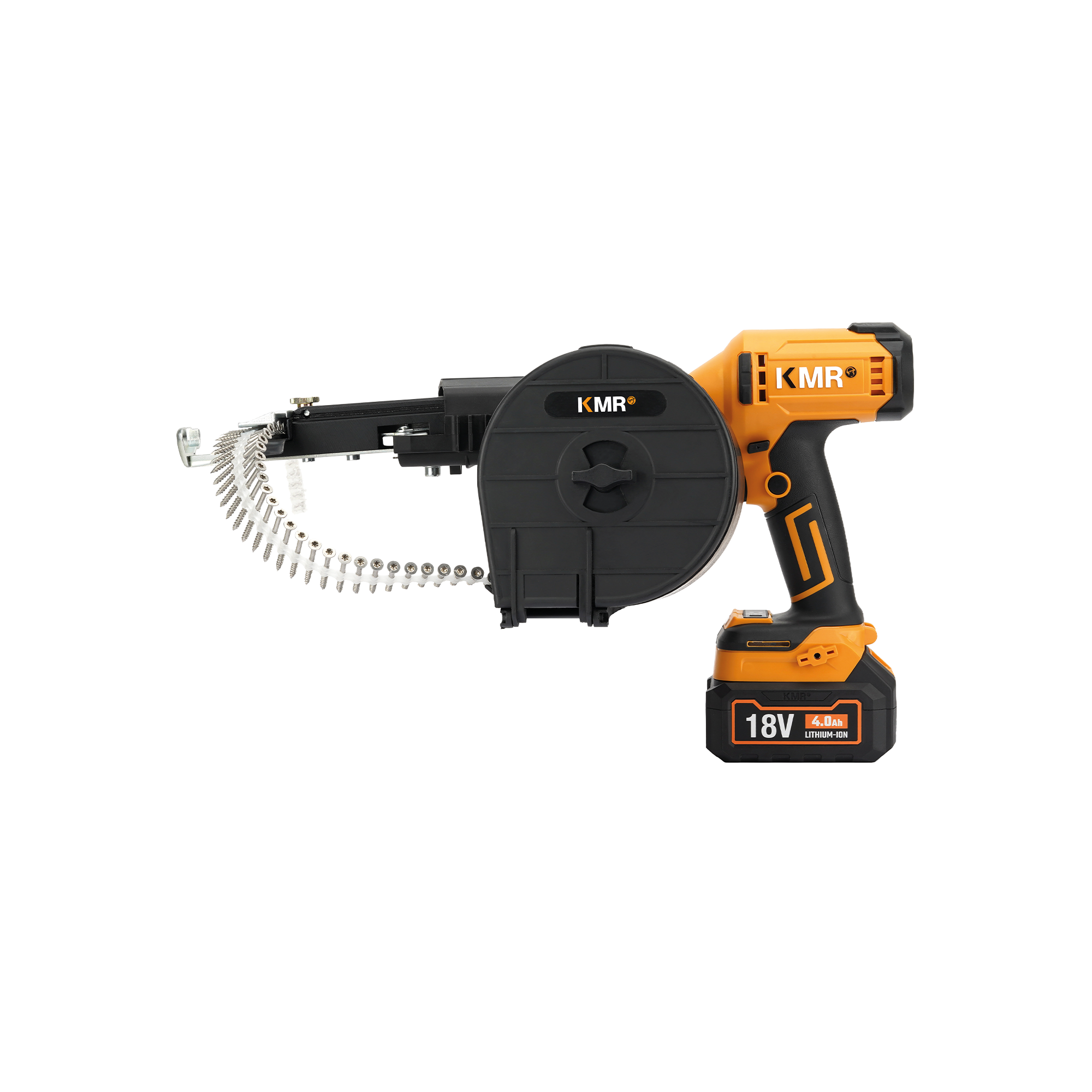 A cordless screwdriver compatible with three different automatic loader connections. An interchangeable system that allows quicker and more efficient screw installation.