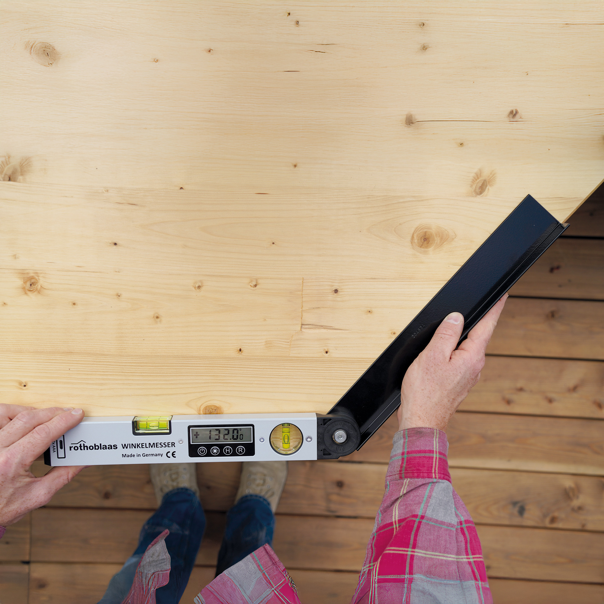 Allows quick calculation of the complementary angle using the reset function in any position. Backlit LCD display with large digits for easy reading.