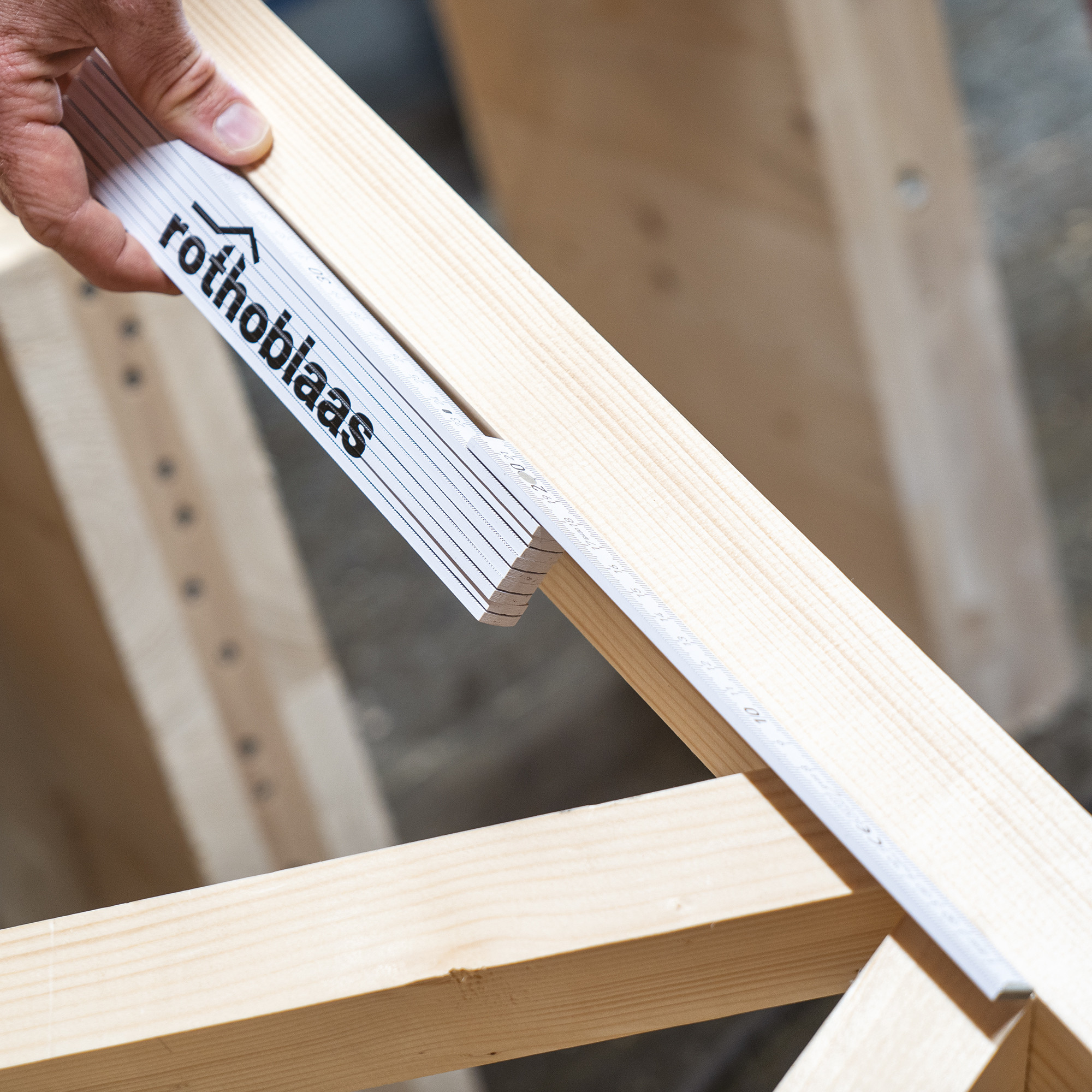 Folding carpenter's ruler made up of a group of rulers, hinged at the ends, kept folded one on top of the other for ease of transport, which once realigned and extended, make a single metric rod of 2 meters.