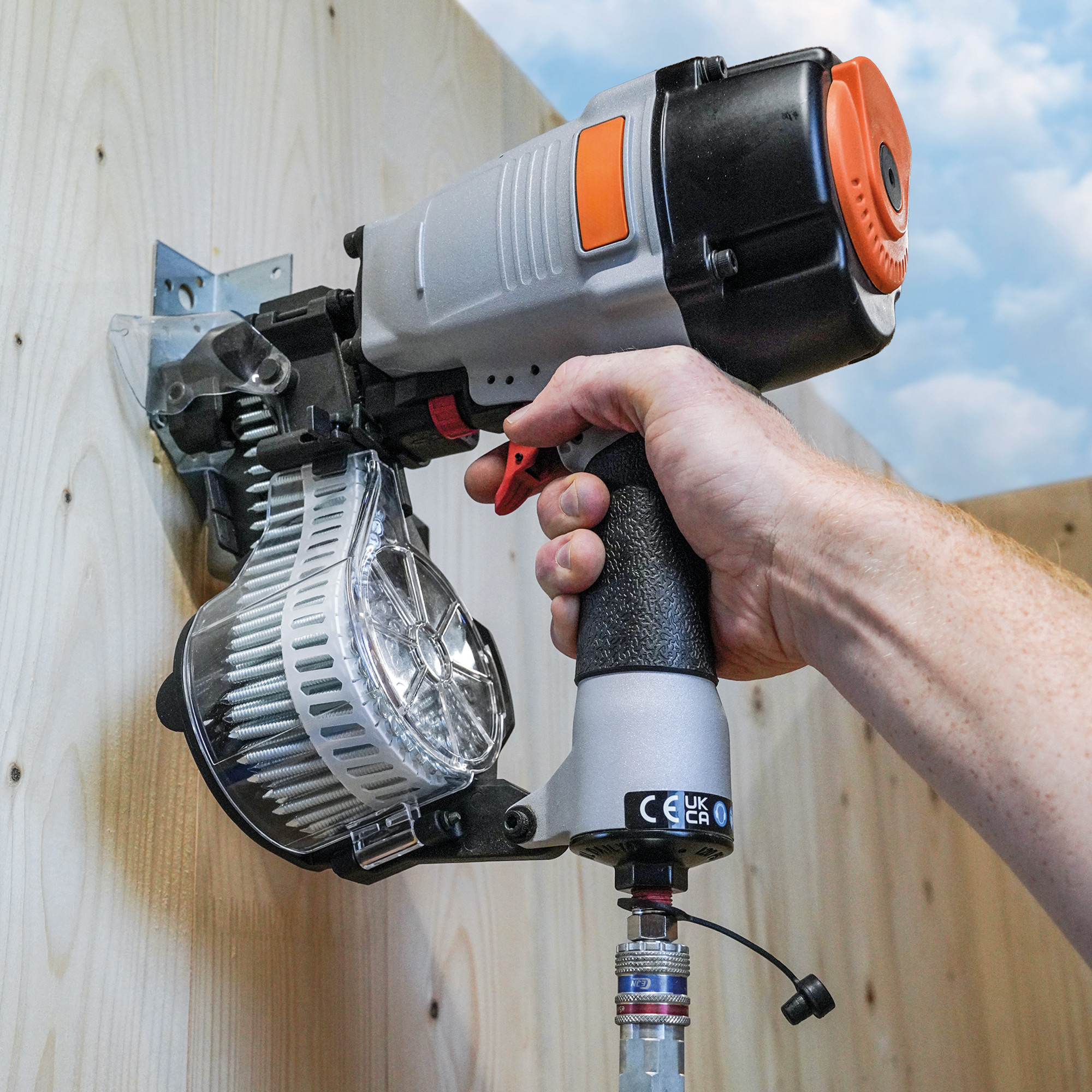 • Up to 100 nails per coil – fewer reloads, greater efficiency on site