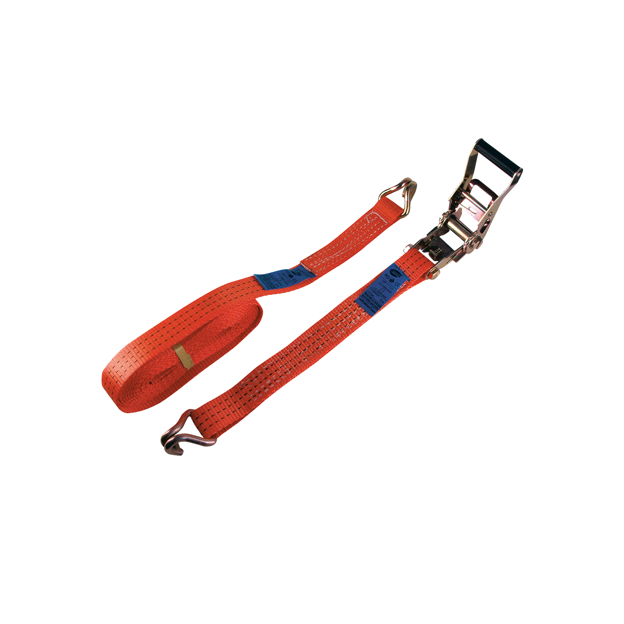 Corrosion-resistant zinc plated steel tensioner with safety lock and lever latch. Tensioning belt according to European standard EN 12195-2.